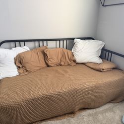 Black wood twin size bed that turns into a double also has 2 drawers$170Riverside, CA