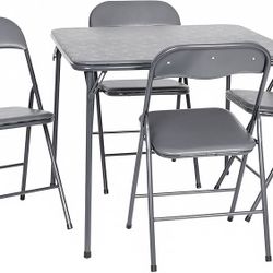 5 Piece Commercial Folding Card Table and Chair Set - Gray Vinyl Tabletop - Gray Metal Frames - Seating for 4$100Ontario, CA