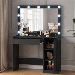 Modern Black Makeup Vanity with Lighted Mirror & Cabinet Storage$99Los Angeles, CA