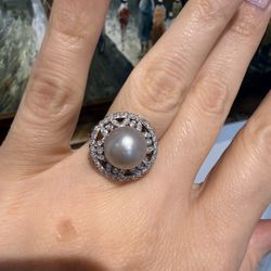 14K White Gold South Sea Pearl And Natural Diamonds Gorgeous Ring $995Seal Beach, CA