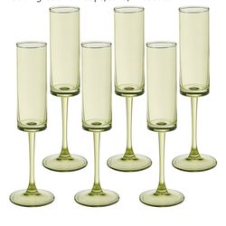 6 Pieces Green Champagne Flutes 6 OZ Straight Sided Wine Glasses Champagne Long Stem Drinking Colored Glasses,Set of 6 Hand Blown Champagne Flutes Gob$22La Mirada, CA