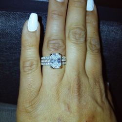 Moissanite Engagement Ring, 2 Full Eternity Bands, 18k White Gold, 4.5ct Radiant Cut Ring$500Montclair, CA