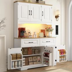 71" Tall Kitchen Pantry Cabinet with 6 Doors Shelves & Led Lights & Charge Station, 47" Wide Freestanding Farmhouse Cupboard with 2 Drawer,6 Doors Sto$140Upland, CA
