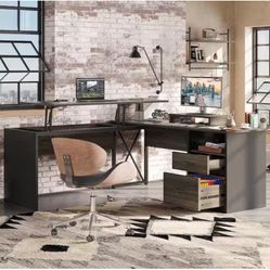 55.7 in. Retro Grey Oak Dark 2 Drawer L-Shaped Computer Desk with Lift-Top$95Anaheim, CA