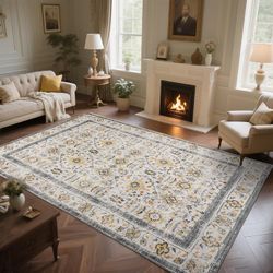 Zentavio 9x12 Washable Area Rugs, Vintage Non-Slip Floral Living Room Rug, Indoor Foldable Floor Thin Low Pile Carpet for Farmhouse Bedroom Dining Roo$40Ontario, CA