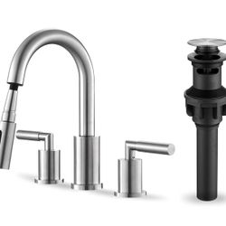 Tohlar Bathroom Faucet with Sprayer, Widespread Bathroom Faucets Brushed Nickel 8 Inch Basin Sink Tap 3 Holes, 2 Handle Vanity Faucet with Pull Out Sp$50El Monte, CA