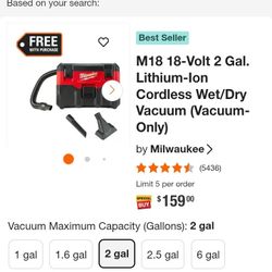 Milwaukee M18 2 Gallon Wet Dry Vacuum $100Lakewood, CA