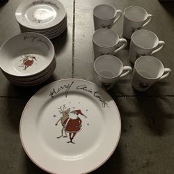 Vintage Longs Drug Stores Christmas Dishes Set Santa Reindeer 22 Pc Plates Cups$109City Of Industry, CA