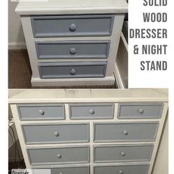 Solid Wood Gray & White 9 Drawer Dresser & 3 Drawer Nightstand Set$140Huntington Beach, CA