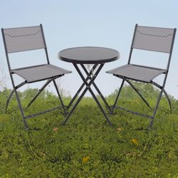 BRAND NEW 3-Piece Folding Bistro Patio Dining Set – Glass Top Table & 2 Heavy Duty Breathable Chairs $85Brea, CA