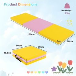 Folding Gymnastics Mat, 6’ x 2’ x 2’’ Thick Tri-Fold Exercise Tumbling Mat w/Carrying Handles, Hook & Loop Fastener, Gym mats for Home Fitness Yoga Ae$30El Monte, CA