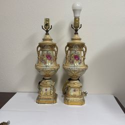 Antique Pair Of Lamps - Gold Hand Painted Flowers Renaissance Style Classical Style Table Lamps $200Los Angeles, CA
