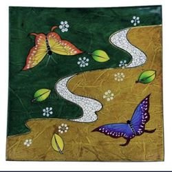 Craft Link Artisan Fair Trade Vietnam Platter Tray Enameled Butterflies Flowers Wall or Table Decor$45Los Angeles, CA
