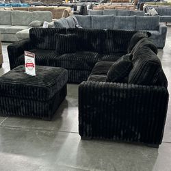 New Black 4-Pc Fur-like Jumbo Corduroy Sectional Sofa With Ottoman No Tax $529Norwalk, CA