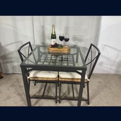 Compact Glass & Iron Dining Table With 2 Seagrass Chairs IKEA Granas$125Santa Fe Springs, CA