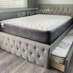 Queen Size Grey Button Bed W Orthopedic Mattress $359Buena Park, CA