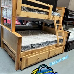Twin Full Bunk Bed Natural Litera Con Colchones Nuevos $1,299Huntington Park, CA