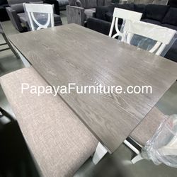 New! 6pcs White Rustic Dining Set, Dinette Set, Kitchen Table And Chairs, Table, Chairs, Bench, Casual Dining Set, Rectangular Dining Table, Dining Ro$399Anaheim, CA