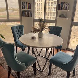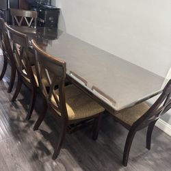 ✅️✅️5 pc dark finish wood white faux marble top square counter height dining table set. This set includes the table and 4 - side chairs padded seats✅️$318Bellflower, CA