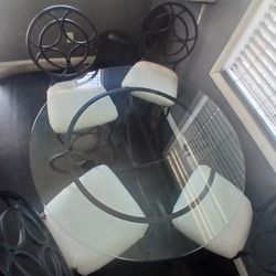 PATIO SET 6 STACKABLE Aluminum CHAIRS with Armrest ROUND Glass Table$80Covina, CA