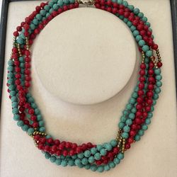 6 Strand Of Turquoise & Coral Beads Necklace Can Be Regular Or Choker$45Los Angeles, CA