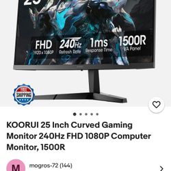 KOORUI 25 Inch Curved Gaming Monitor 240Hz FHD 1080P Computer Monitor, 1500R$75La Habra Heights, CA