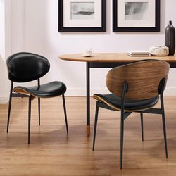 Modern Faux Leather Dining Chairs – Set of 2 – Black/Walnut – New$135Beverly Hills, CA