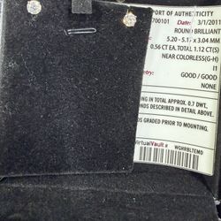 Pair Of Diamond Stud, Earrings, Great Quality Certified$1,800Los Angeles, CA