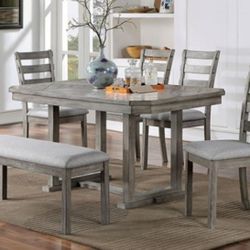 ✅️✅️(6 pc white & grey finish wood dining table set grey padded seat chairs and bench✅️✅️✅️$298Bellflower, CA