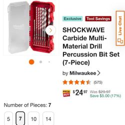 SHOCKWAVE Carbide Multi-Material Drill Percussion Bit Set (7-Piece)$15Los Angeles, CA