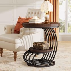 Tribesigns Round End Side Table: Side Table with 2 Tiers Storage Shelves, Vintage End Table for Living Room, Small Bedside Table Accent Table with Arc$100Irwindale, CA