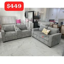 Corduroy 2 Piece Sofa And Loveseat Set With Cup Holder + Console $449West Covina, CA