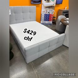 Light gray queen size bed frame - Mattress Sold Separately $429El Monte, CA