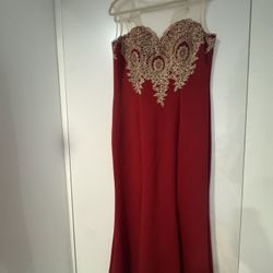 Red Long Dress 👗 With Gold Lace $75Tujunga, CA
