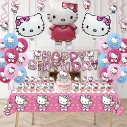 Kitty Birthday Party Supplies, Party Decorations Set Include Banner, Balloons, Hanging Swirls, Cake Cupcake Toppers, Tablecloth for Girls Kitty Theme $18Shadow Hills, CA