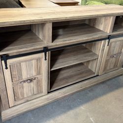 Farmhouse LED TV Stand for 75 Inch TV, 32" Tall Entertainment Center with Sliding Barn Doors and Storage Cabinets, Rustic Media Console with Adjustabl$135El Monte, CA