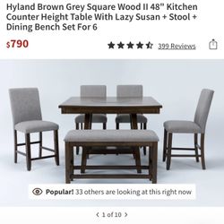 Dining Table Set. Hyland Brown Grey Square Wood II 48" Kitchen Counter Height Table With Lazy Susan + 3 Stool + Dining Bench $150Garden Grove, CA