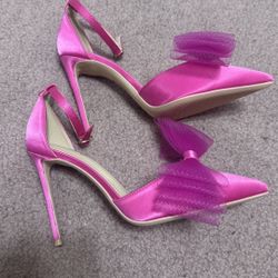 New 9.5 hot pink high heels shoes bow Barbie stilettos$11Mount Baldy, CA