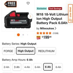 Milwaukee 18v High Output 6.0AH Battery $100Hawthorne, CA