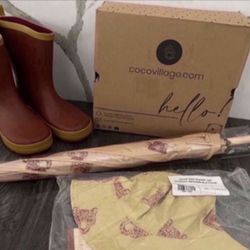 Kids NEW Coco village Rain Boot (size 3), Bucket Rain Hat, Umbrella Set $60Irvine, CA