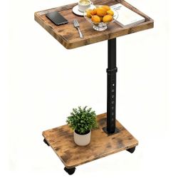 Brown C Shaped End Table Adjustable Height, Sofa Side Table with Wheels, TV Tray Table for Living Room, Bedroom, Small Spaces, Couch Tables That Slide$50Whittier, CA