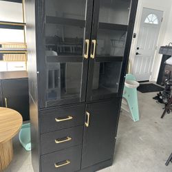 New Black Storage Cabinet with Glass Doors 31” W x 15.5” D x 67” H$115Temple City, CA
