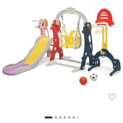 5 in 1 toddlerslide and swing set multicolor with basketball hoop$75Buena Park, CA