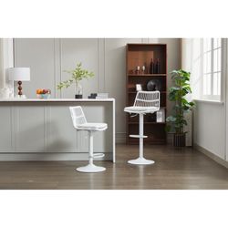 Adjustable Height White Rattan Barstool Set Of 2 $85El Monte, CA