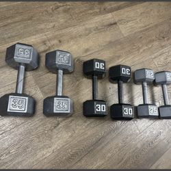 3 Pairs Of Hex Cast Iron Dumbbells 35s, 30s, 25s Total: 180 lbs$225Los Angeles, CA
