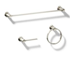 Kohler 3 Piece Premise Vibrant Polished Nickel Decorative Bathroom Handware Set Towel Bar,Toilet Paper Holder And Towel Ring Included $40Hayward, CA