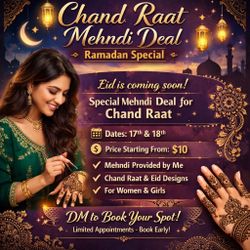 Coming Soon Eid 🌙 Ramadan Special – Chand Raat Mehndi Deal ✨$10Stockton, CA