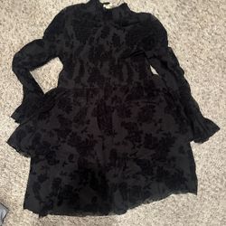 Ashley Stewart Black Keyhole Long Sleeve Ruffle Mid Length Knee Dress $15Antioch, CA