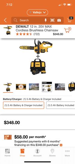 DEWALT CHAINSAW 12 INCHES 20 V XR BRUSHLESS WITH BATTERY 6.0 FLEX VOLT AND CHARGER BRAND NEW$300Vallejo, CA