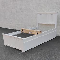 Twin Bed Frame & 2 Rolling Storage Drawers Captains Platform WhiteTwin Bed Frame & 2 Rolling Storage Drawers Captains Platform White